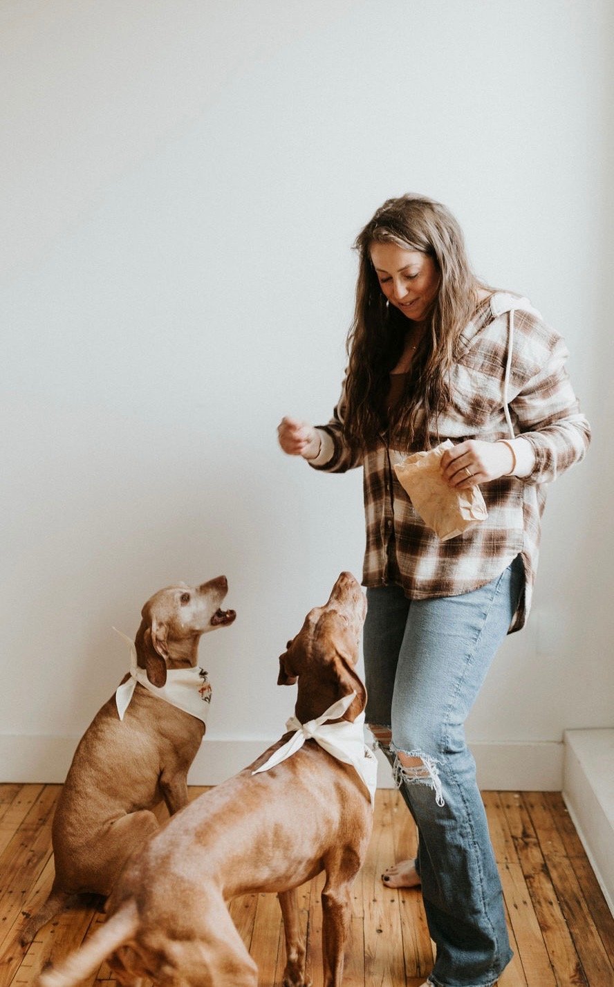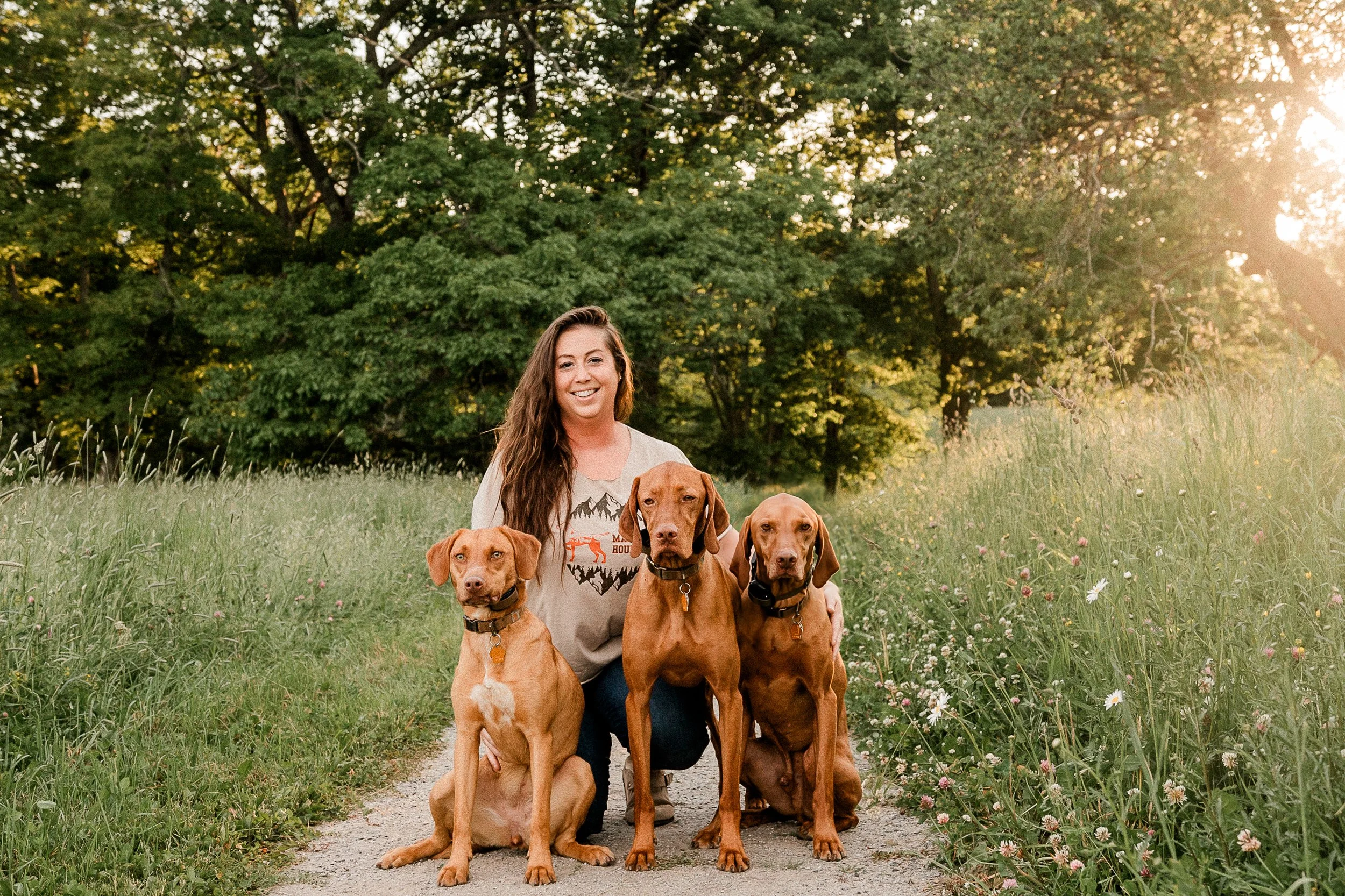 I’m a proud dog mom to two Vizslas, Mulligan and Finnigan, and my Pitbull/GSP mix, Tallulah. They are the reason I chose this path and continue to inspire the way I work with dogs every day.